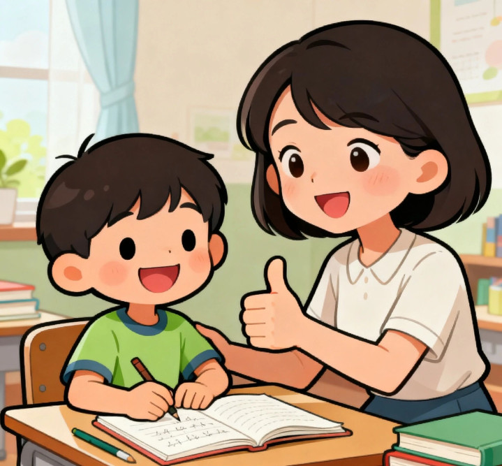 在妈妈的鼓励下,瑶瑶越来越自信,写作业的速度和质量都明显提升。